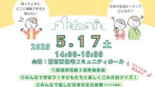 中野区社会福祉協議会、中野区国際交流協会と一緒に取り組んできた「鷺宮グローバルネットワーク」も、4年目に入りました。5月17日には、鷺宮西住宅コミュニティーホールで「3周年記念報告会」を開催。HATI JAPAN は、地域の子どもたち向け...